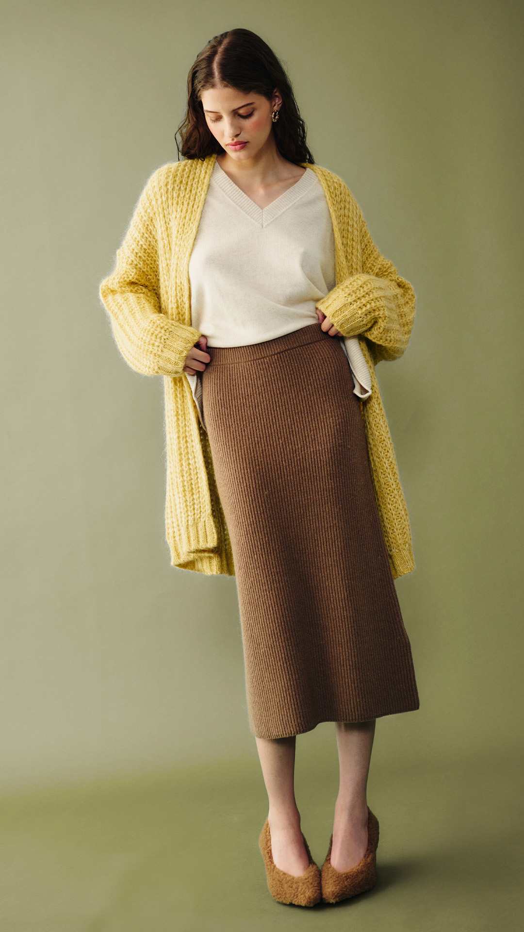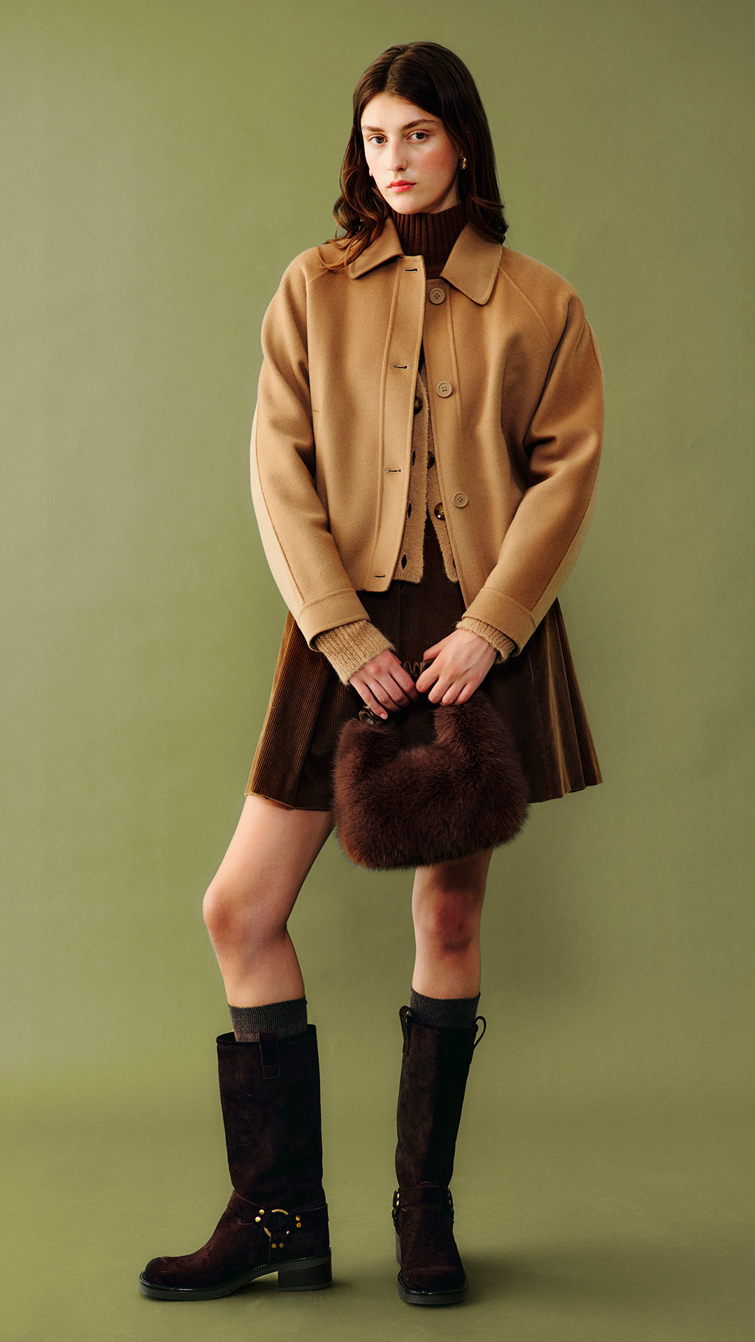 Chocolate is winter’s new temptation: maxi dresses, leather blazers and double-breasted peacoats mix with long gloves, snake-print slingbacks and quilted bags.