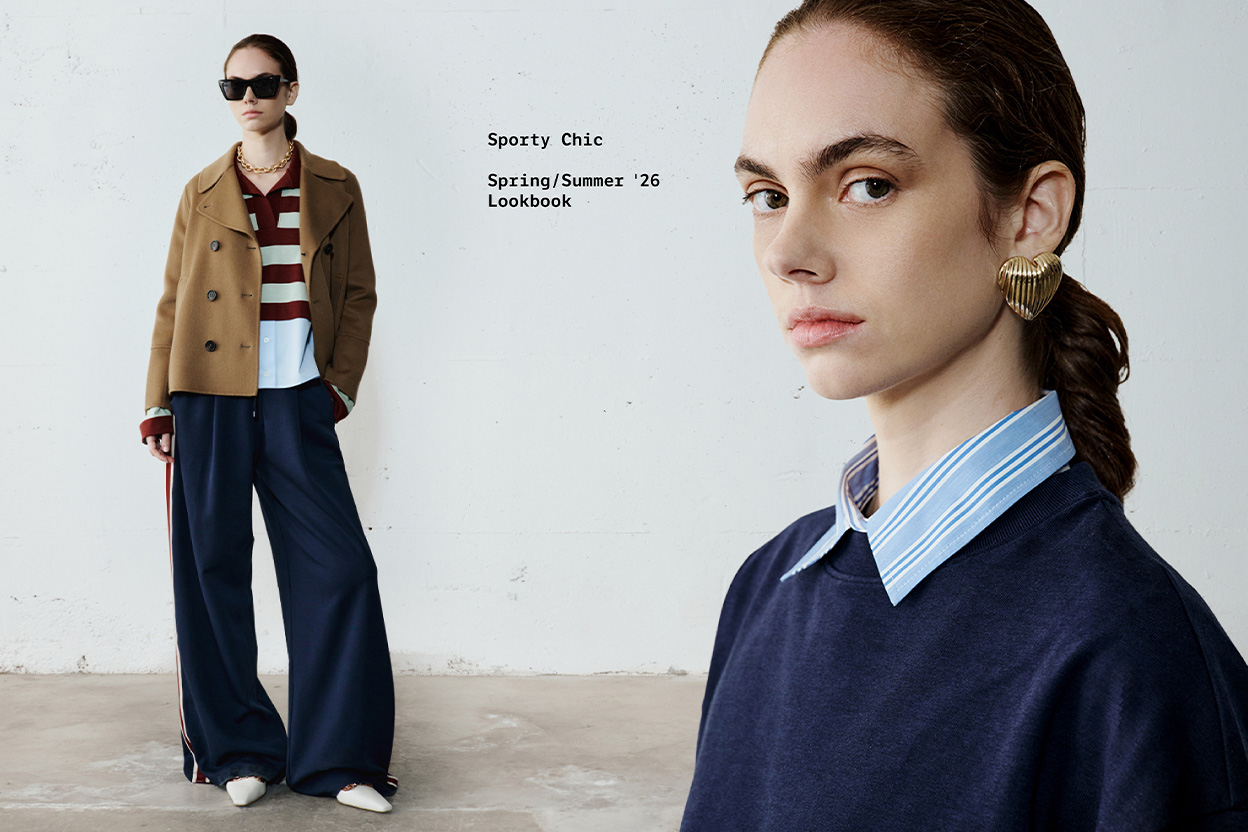 Discover a sporty attitude with a sophisticated touch. This spring the wardrobe combines neutrals with polished details, mixing lightweight sweatshirts and trousers defined by wide volumes to create a casual yet highly refined look.