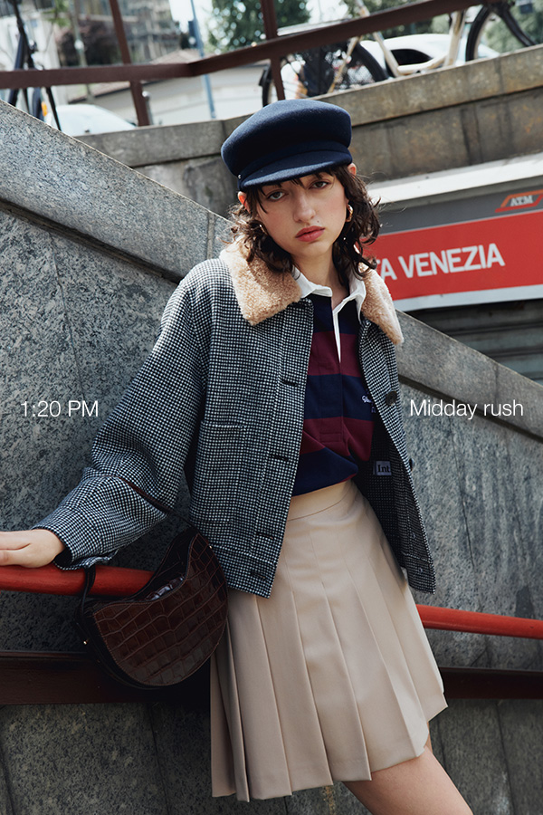 College style is the latest trend: the perfect blend of preppy elegance and a super-cool attitude. For a straight-A look, start with the basics: a pleated miniskirt paired with a striped polo.