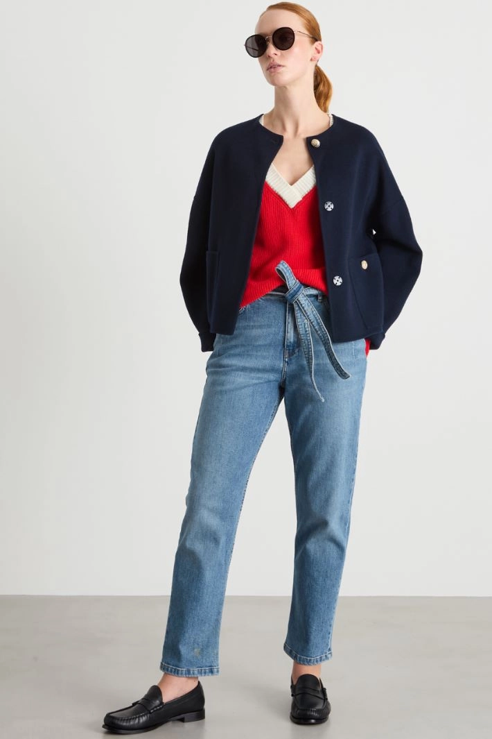 Boxy-fit jacket in a wool blend, with a round neckline, long dropped-shoulder sleeves and low-set patch pockets. Unlined. Button fastening.