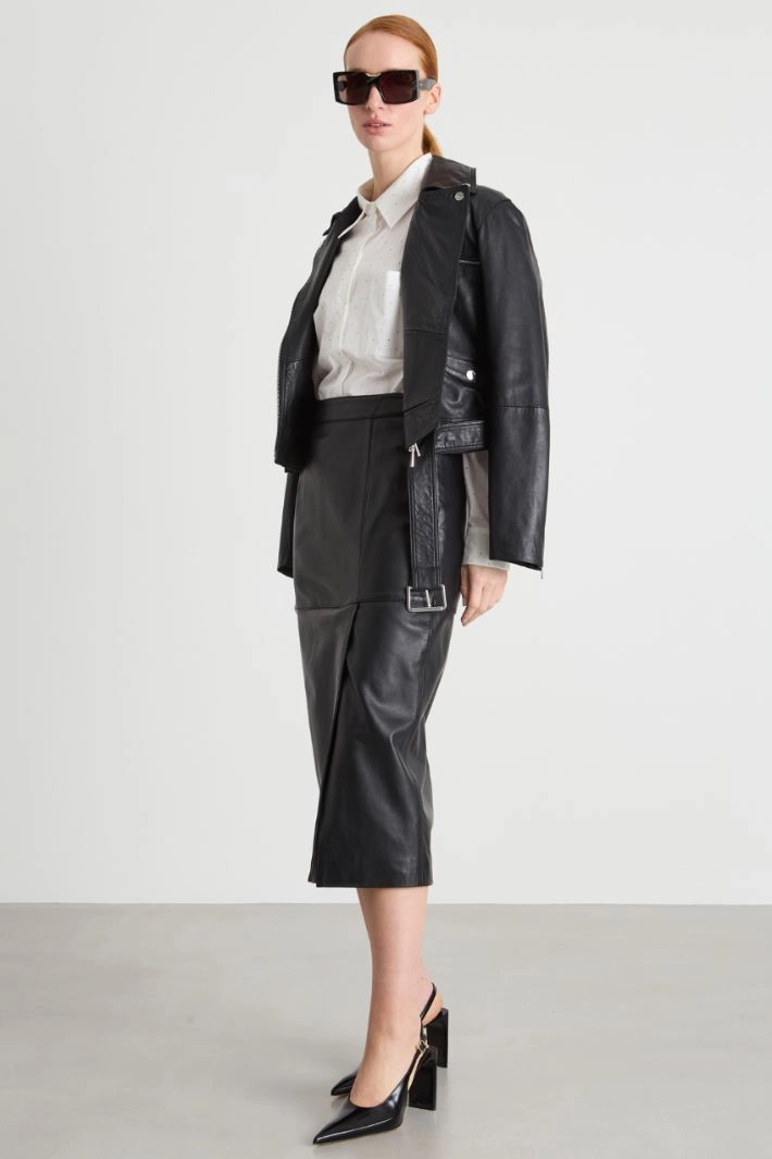 Straight leather skirt