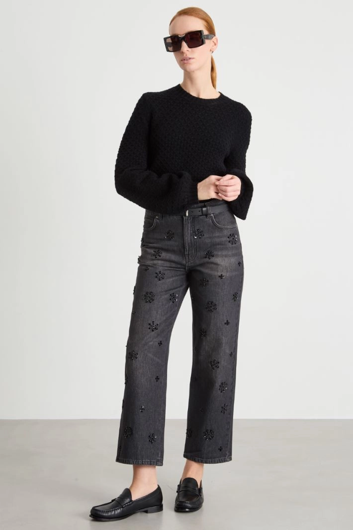 Voluminous-sleeve cropped jumper