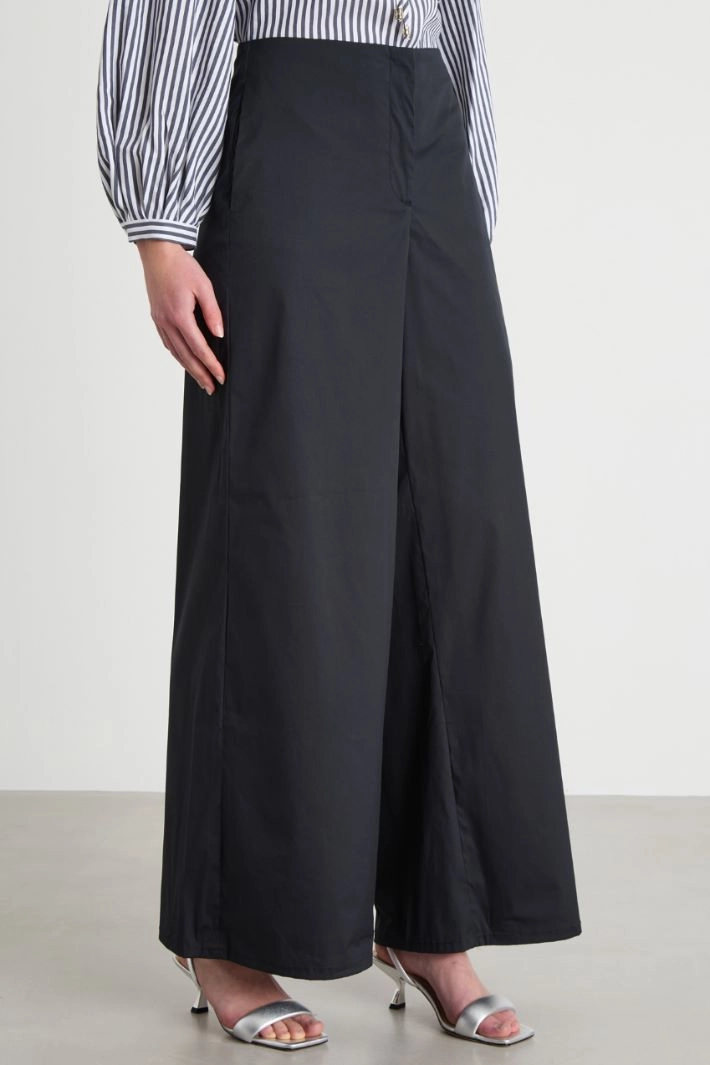 Straight-fit trousers crafted in stretch cotton-blend poplin, featuring in-seam side pockets and rear welt pockets. Hook and zip fastening.