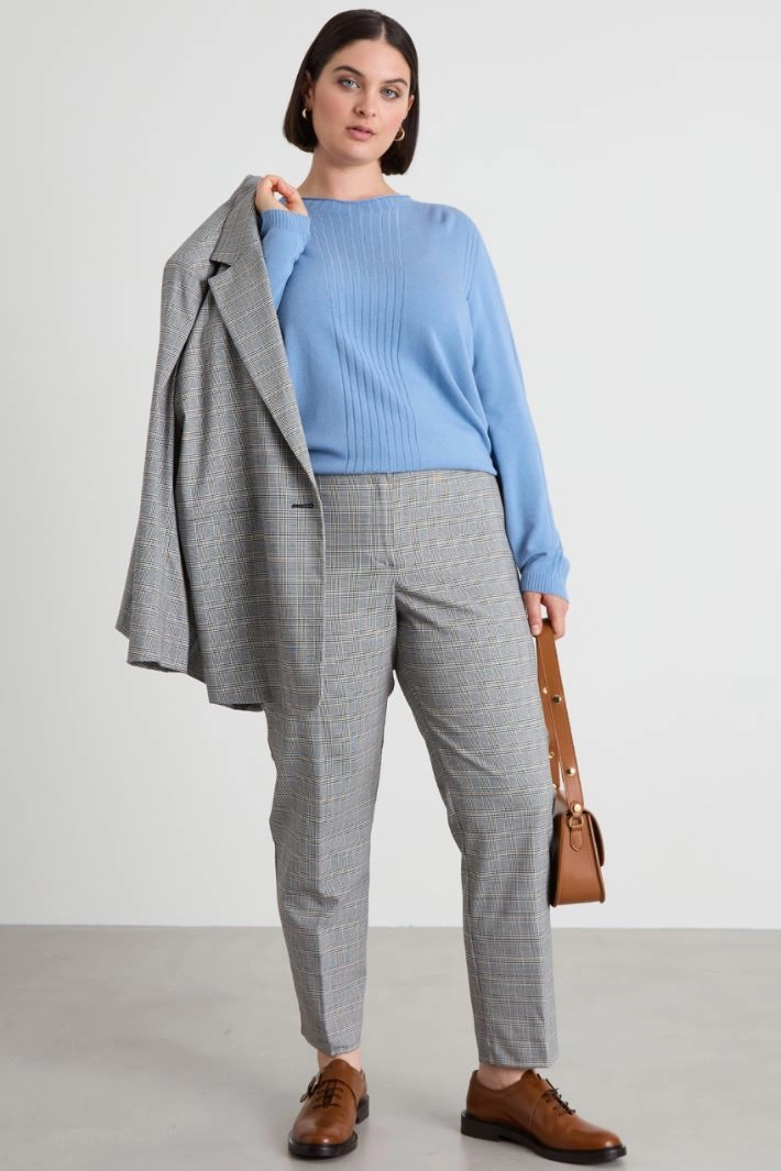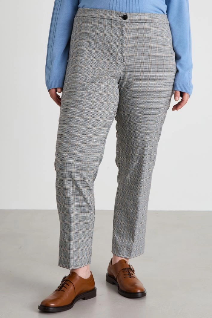 Cigarette trousers in yarn-dyed stretch viscose blend batavia, with elastic waistband insert at the back and pressed crease lengthwise. Fastening with hidden zip and button.