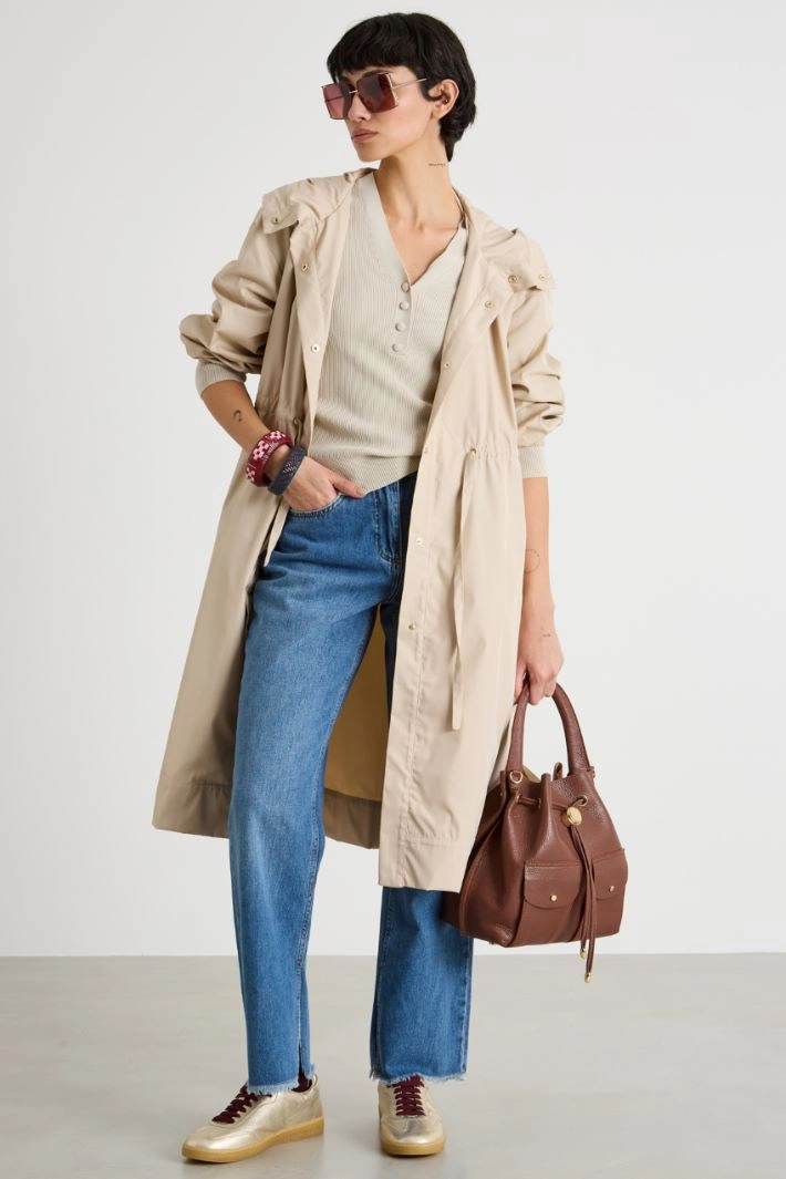 Hooded drawstring raincoat