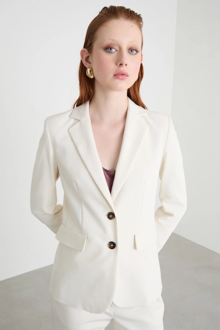 Slim-fit blazer crafted in stretch cotton-blend double cloth, with a lapel collar, long sleeves and side flap pockets. Lined. Button fastening.