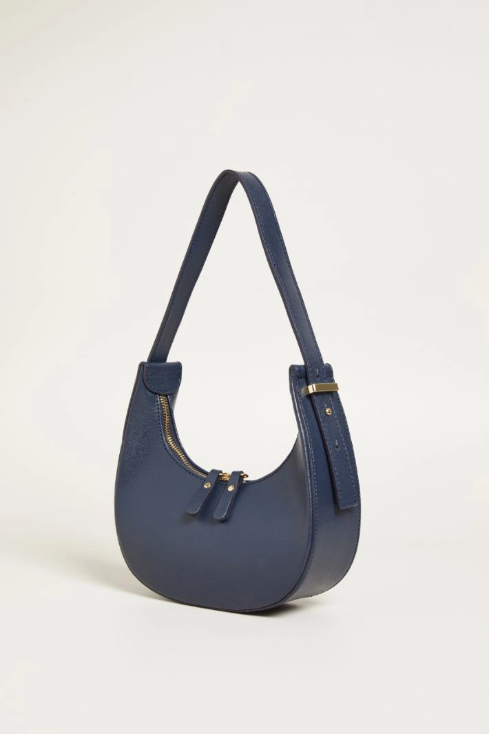 Leather shoulder bag with single handle and internal pocket. Double zip fastening. Lined.