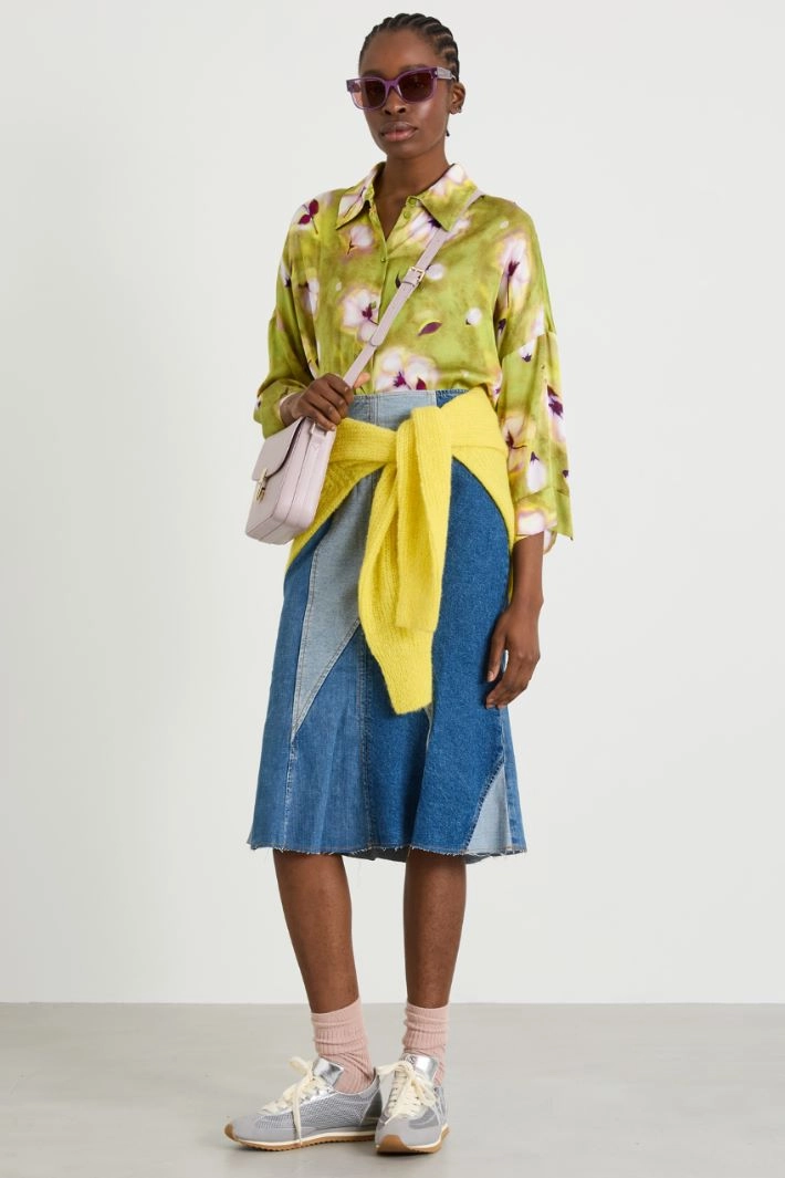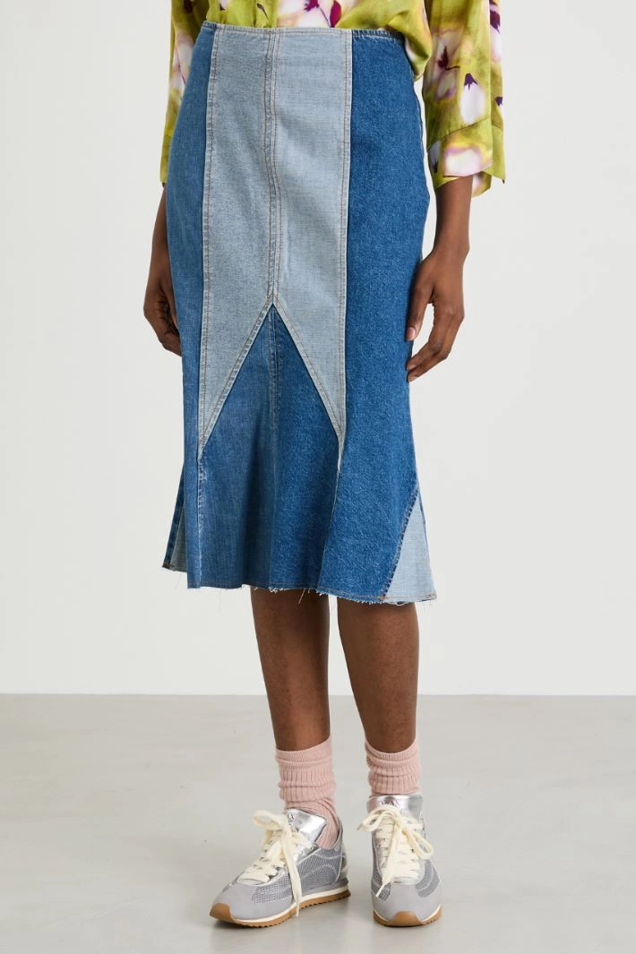 Patchwork denim skirt