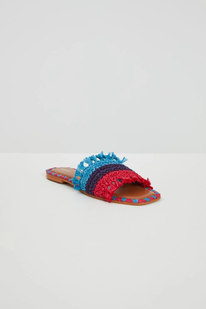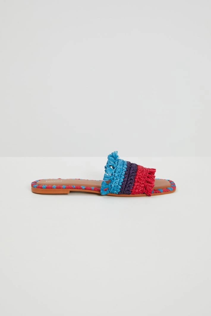 Sandalias planas realizadas en puro algodón efecto rafia, con puntera cuadrada. Suela de goma