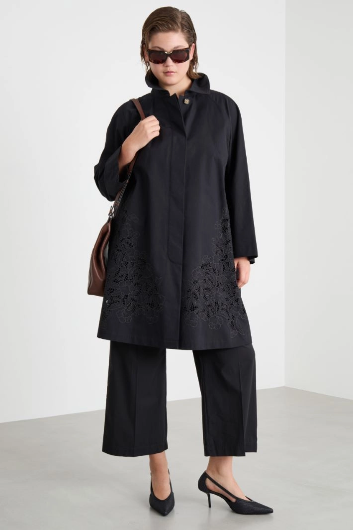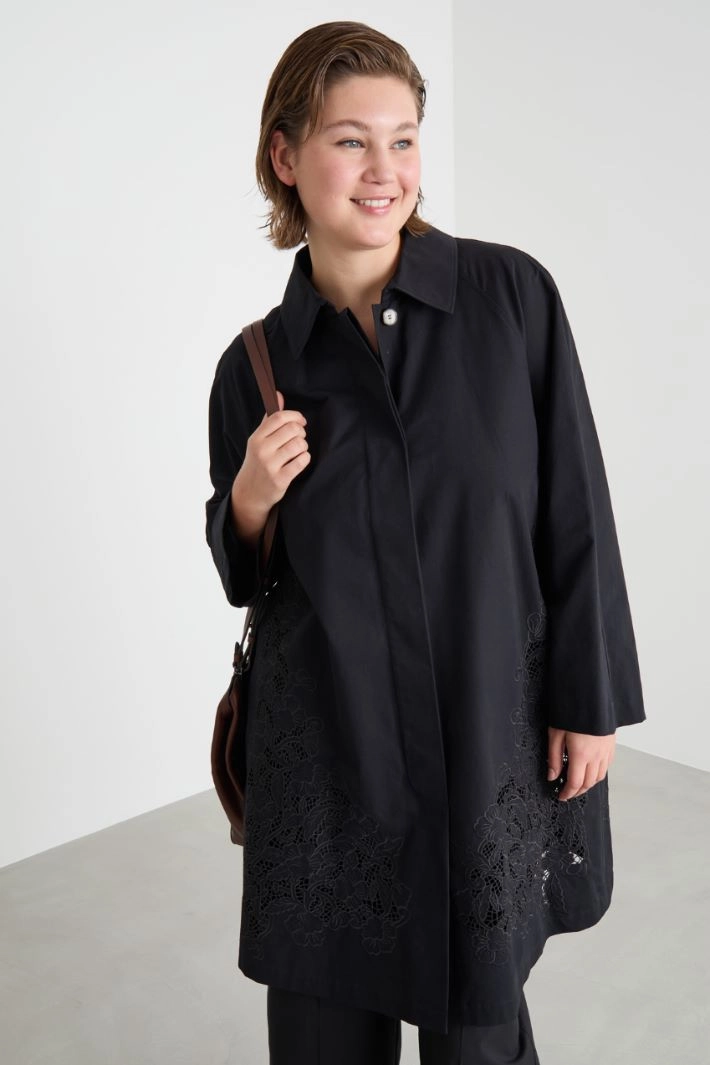 Embroidered water-repellent twill raincoat