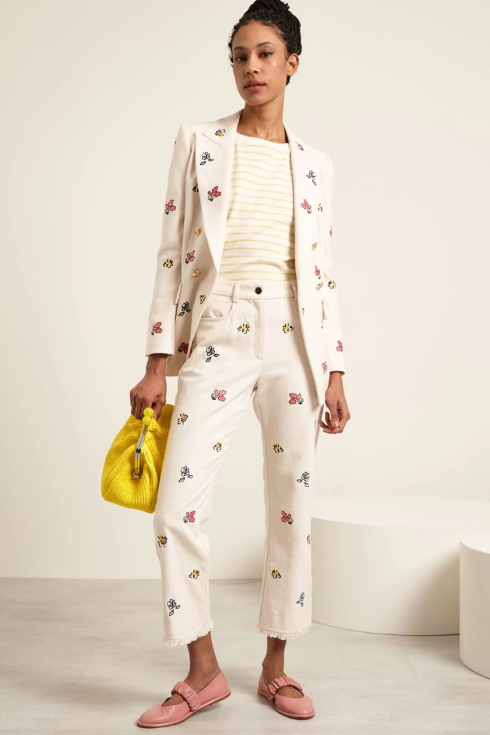 Embroidered canvas trousers