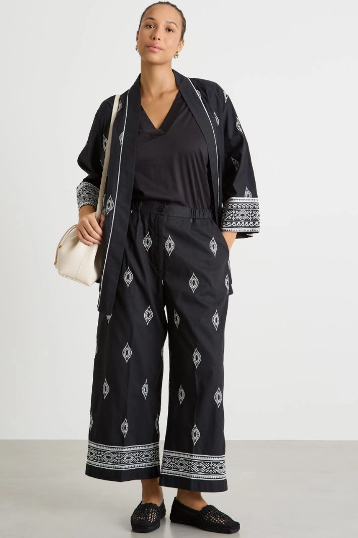 Embroidered belted tunic