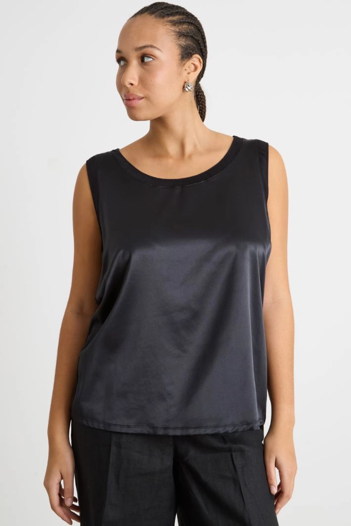 Stretch jersey and satin top